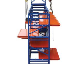 客戶場內自帶行車,所以模具架不需要配備天車葫蘆,客戶只要使用行車就可以實現模具的存放以及在模具架中調換放置模具的位置